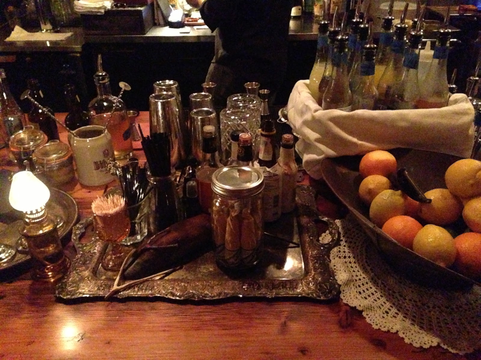 Last weekend I grabbed a drink with a few friends at The Tannery, one of Portland's newest drinking establishments (only 8 Yelp reviews "new") on the city's eastside. I had been wanting to check this bar out for a while, mainly drawn to its tiny size and potential coziness for a cold rainy night. When I walked in the door on Saturday, I was met with a great rustic-Portland vibe, super nice bartenders, and a stellar drink list. Some of the notable design elements included School House Electric lighting, long communal wooden tables, oil lamp sconces and old-timey accents reminiscent of saloons of the Wild West. And just as I hoped, it was really cozy.